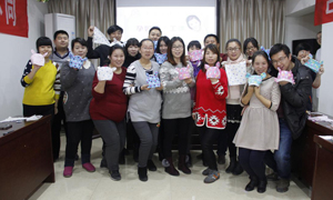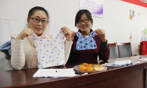 4月30日,凤凰妇产医院母婴大学特邀心理咨询师、客服部王晓红主任手把手教准妈妈们为“新生宝宝”送上第一份礼物——超可爱、超fashion、萌萌哒口水巾!