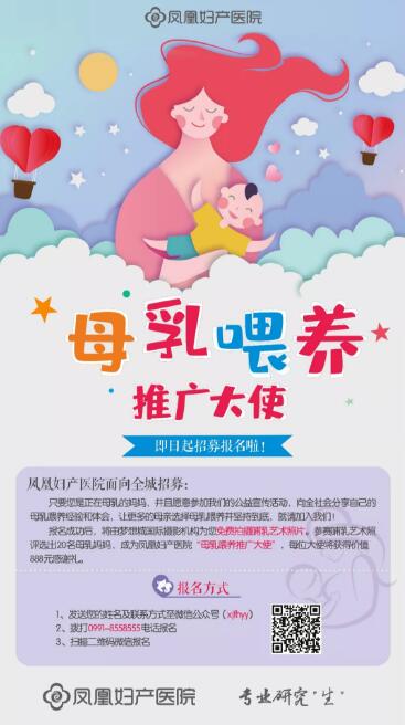 只要您是正在母乳的妈妈,并且愿意参加我们的公益宣传活动,向全社会分享自己的母乳喂养经验和体会,让更多的母亲选择母乳喂养并坚持到底,就请加入我们。扫以下二维码报名,也可以直接致电0991-8558555即可报名参加。