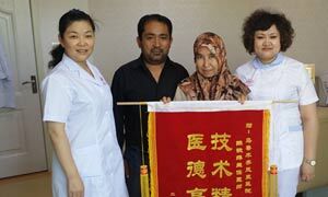 2015年5月25日,比力克孜再次走进凤凰妇产医院。这次她不是来咨询,也不是来治病,而是和丈夫带着腹中的宝宝,一家三口来向陈铁萍主任和祖丽皮亚护士赠送锦旗。锦旗上的“医术精湛,医德高尚”,表达了对陈主任妙手治愈她八年不孕症的万分感谢,同时也对祖丽皮亚护士在她就诊期间悉心照顾、凤凰护理表示感激。