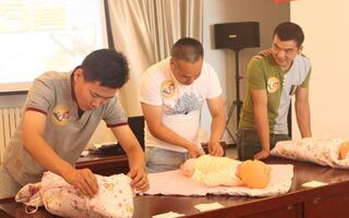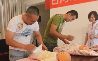 “过去哪学过换尿布,第一次学真是手忙脚乱的。我媳妇都怀孕8个月了,所以我得赶紧恶补这方面知识,希望能快速学成。”30岁的准爸爸陈博笑着说。