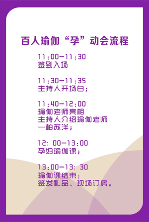 4、结束:有秩序离场,瑜伽服、瑜伽垫可免费带回家;现场提供妇产科主任咨询、预约订房等服务,有需要可随时寻找工作人员。