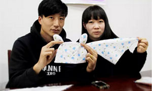 温暖的小屋,欢快的音乐,准爸妈认真地为宝宝制作出生礼