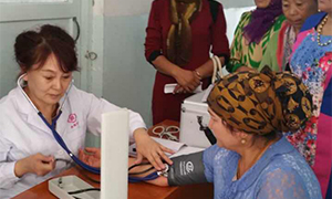 “乌鲁木齐市医院来的专家、主任医师亲自为我们检查、看病……”继捐资助学仪式结束后,来自凤凰妇产医院妇科、超声科等科室的医务人员,现场为受到资助的50名“凤凰幼师班”少数民族女孩母亲进行健康体检,提供免费义诊服务。