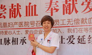 凤凰妇产医院院长梁秀娟表示,团体献血对于缓解临床用血的压力有着重要意义,当我们挽起衣袖勇敢奉献之时,就是他人获得新生或健康之时。今后,凤凰妇产医院还将组织公益鲜血活动,将这份爱传递下去,也希望能有更多的爱心企业、志愿者们能积极参与到无偿献血的社会公益活动中来,为挽救临床输血病人奉献一份爱心。