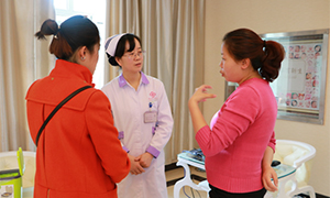 产科、儿科及中医科的医师组成的医疗团队,定时为妈妈和宝宝进行健康检查,护理人员会为产妇量血压、测体温、检查恶露及子宫恢复的情况。指导产妇正确的哺乳姿势和方法,协助她们给宝宝换尿布、洗澡、抚触、游泳,监控宝宝的健康状况等。