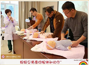 12月4日,凤凰妇产医院产房护士长焦变妮为各位如约而至的准爸妈送上《新生儿护理》课程。课程中,焦护士长不仅为准爸妈们详细介绍了新生儿的生理特点,还根据新生儿的特殊性教大家如何仔细、细心地去呵护宝宝的口腔、鼻部、耳部、四肢等。另外,对于广受热捧的“新生儿抚触”手法,焦护士长现场示范并带着准爸妈们现场体验。