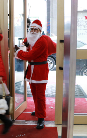 笑脸盈盈的圣诞老人推门而入