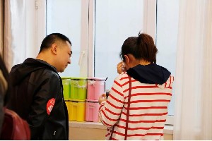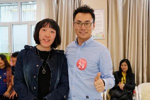 在凤凰妇产医院母婴大学的忠实粉丝中,有一对来自马来西亚的夫妻。几乎每堂课丈夫都陪妻子一起来,而且听得很认真。今天的挑战赛他们也来了,在等待的过程中准爸爸就开始跃跃欲试想要冲击12级。