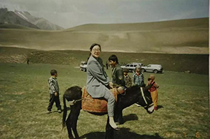 年轻时的李小英骑着毛驴上昆仑山探访病人